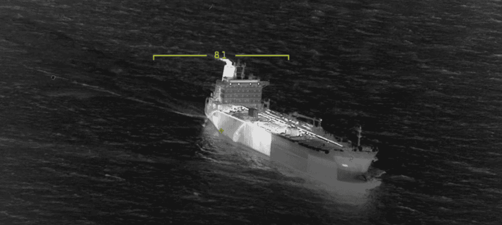 De bemanning van het kustwachtvliegtuig kreeg een Panamees gevlagde chemicaliëntanker in het vizier en een vermoedelijk illegale lozing werd waargenomen. De bemanning van het schip was bezig met het wassen van de lege tanks op zee. Het schip had palmolie als lading aan boord. Daarnaast spoot de bemanning van het schip het dek schoon met warm water en liep dit afvalwater zo de zee in. Ook de lekbakken om verontreinigde vloeistoffen op te vangen werden schoongespoten en in zee geloosd. Hierdoor ontstond een spoor van 9 kilometer achter het schip.